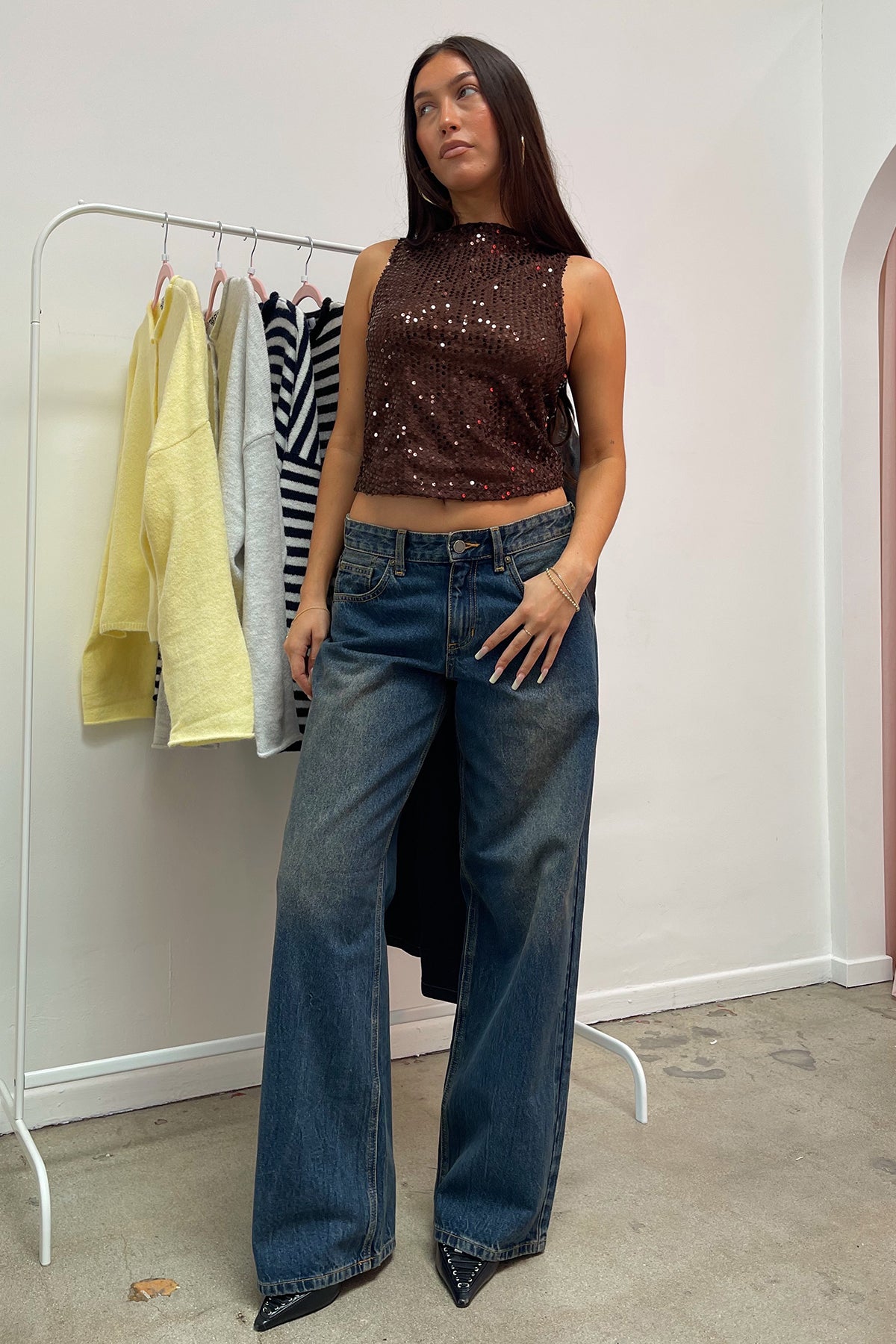 Styled with the Blueprint Vintage Denim Baggy Wide Leg Jeans.