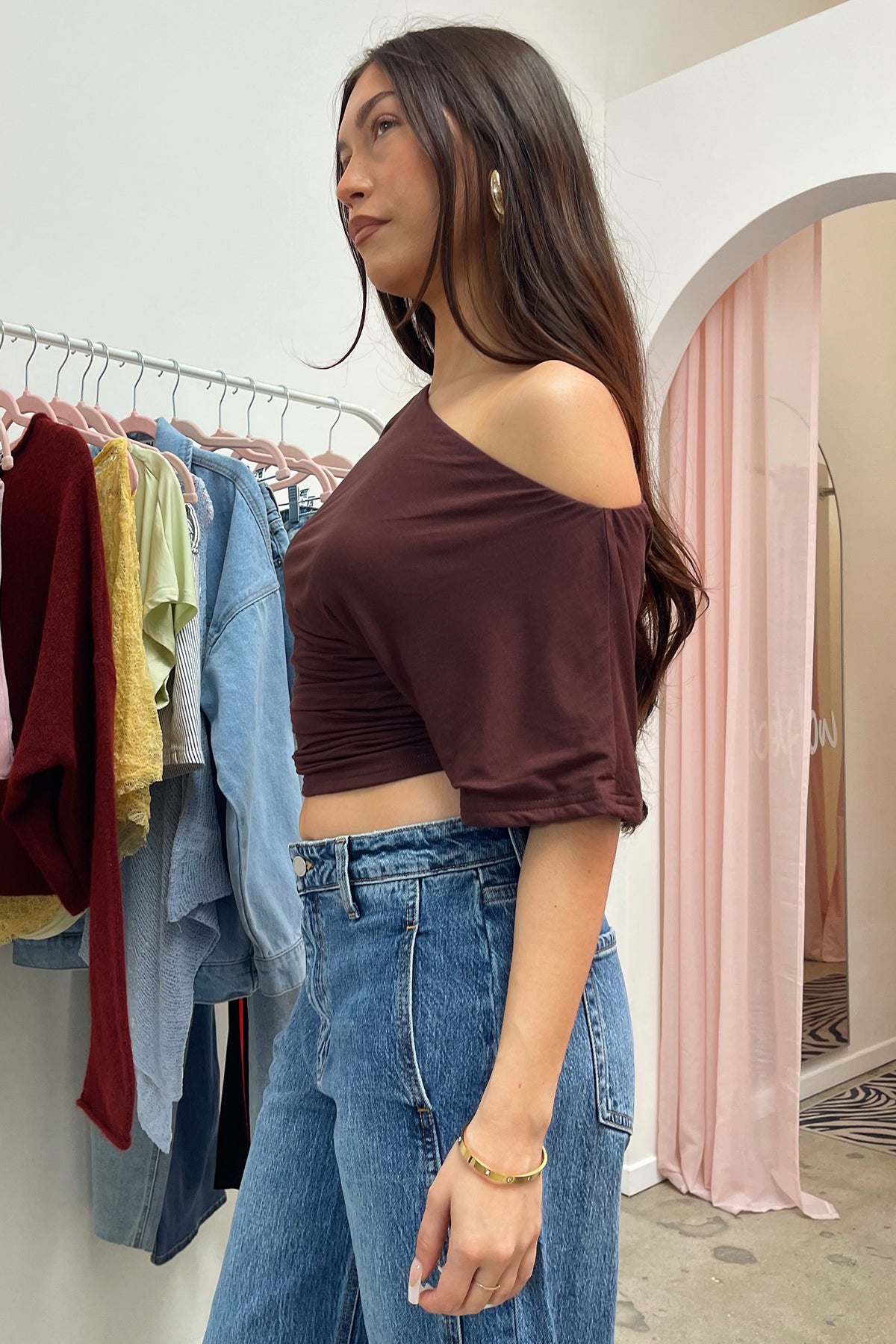 Brown wide neck top