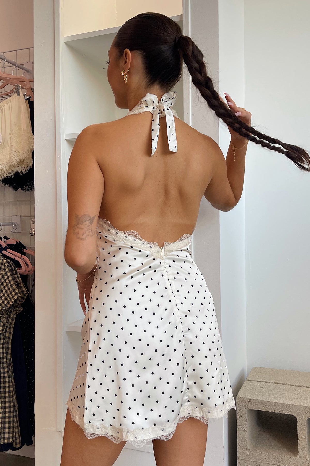 At First Sight Cream with Black Polka Dot Lace Trim Mini Dress