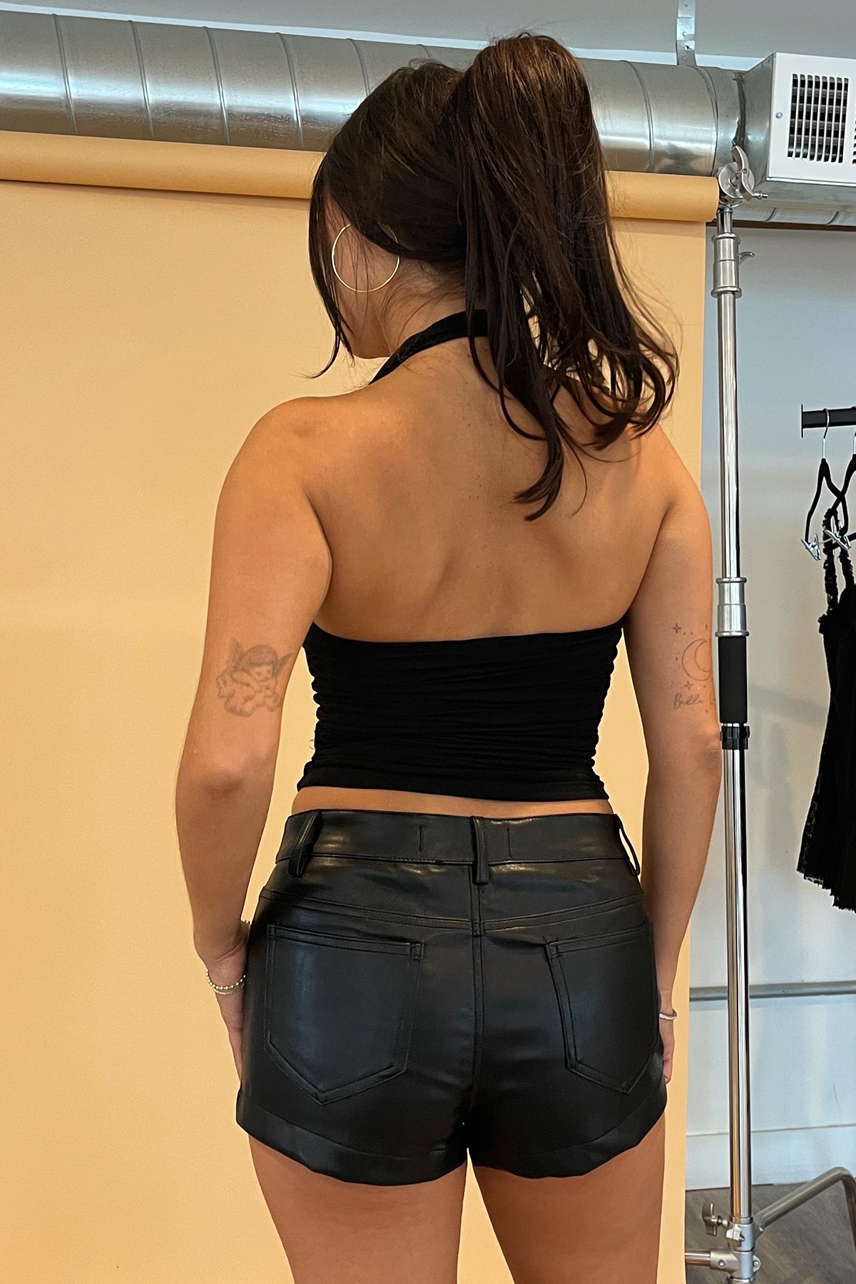Styled with Back to Basics Black Double Lined Halter Tank.