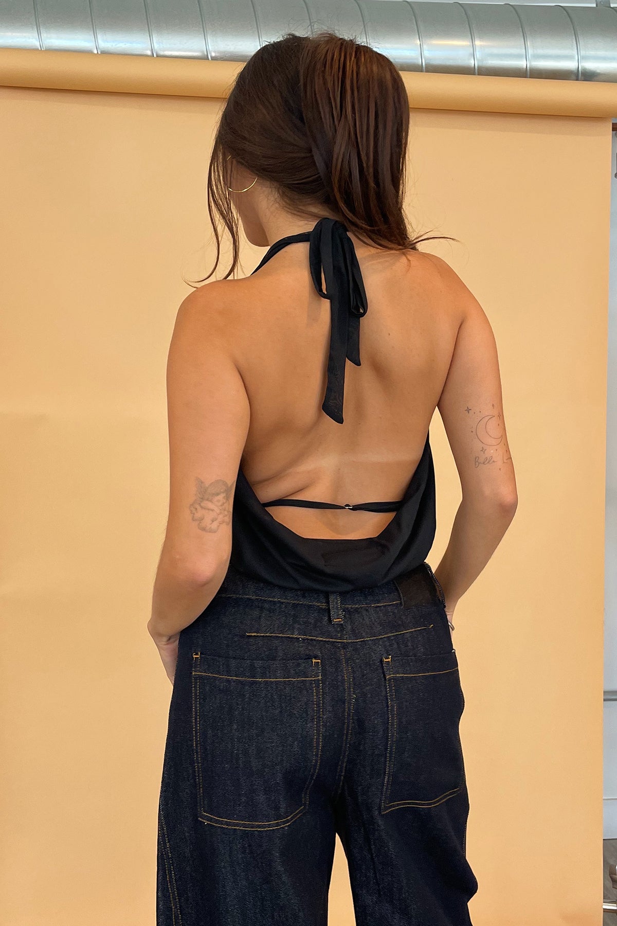 Til Dawn Black Mesh Tie Neck Halter Tank Top